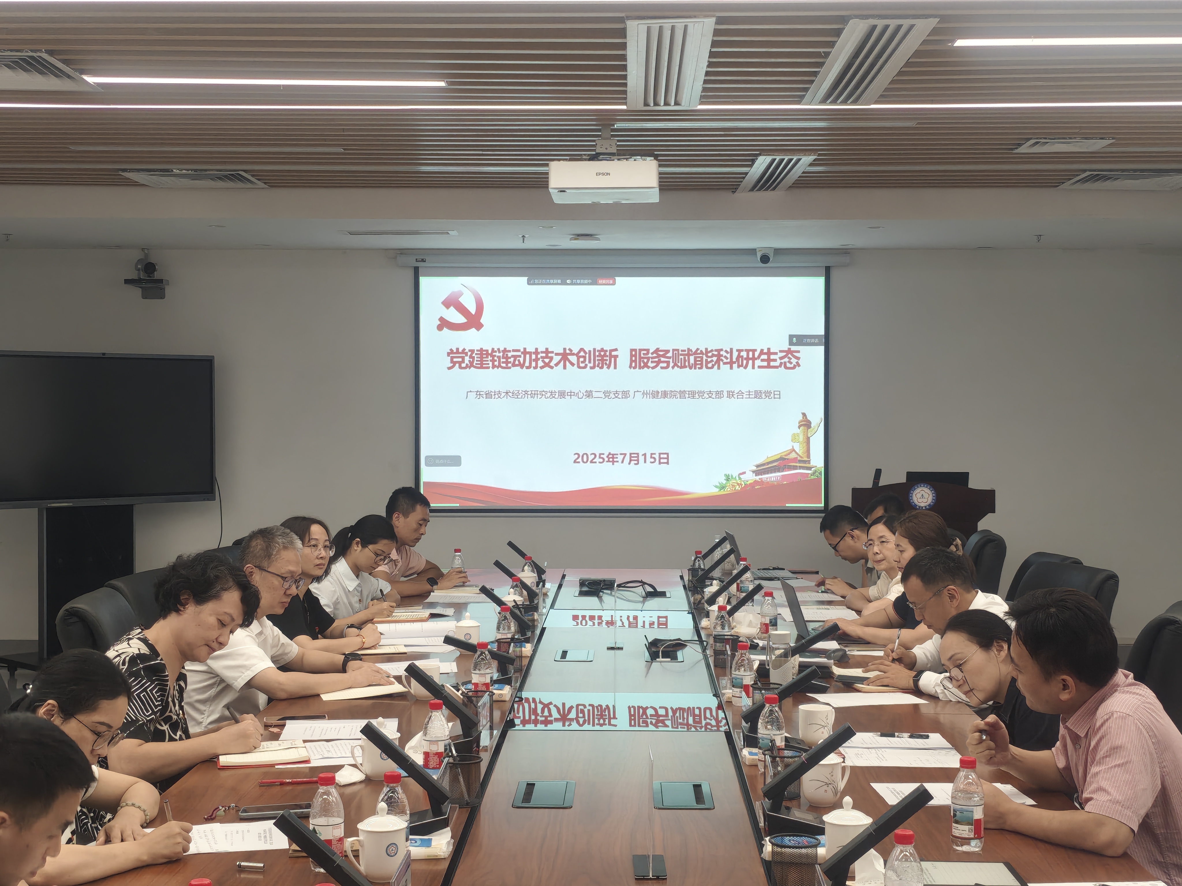 為推動黨建與業(yè)務(wù)深度融合,7月15日,管理黨支部與廣東省技術(shù)經(jīng)濟研究發(fā)展中心第二黨支部聯(lián)合開展“黨建鏈動技術(shù)創(chuàng)新 服務(wù)賦能科研生態(tài)”主題黨日。