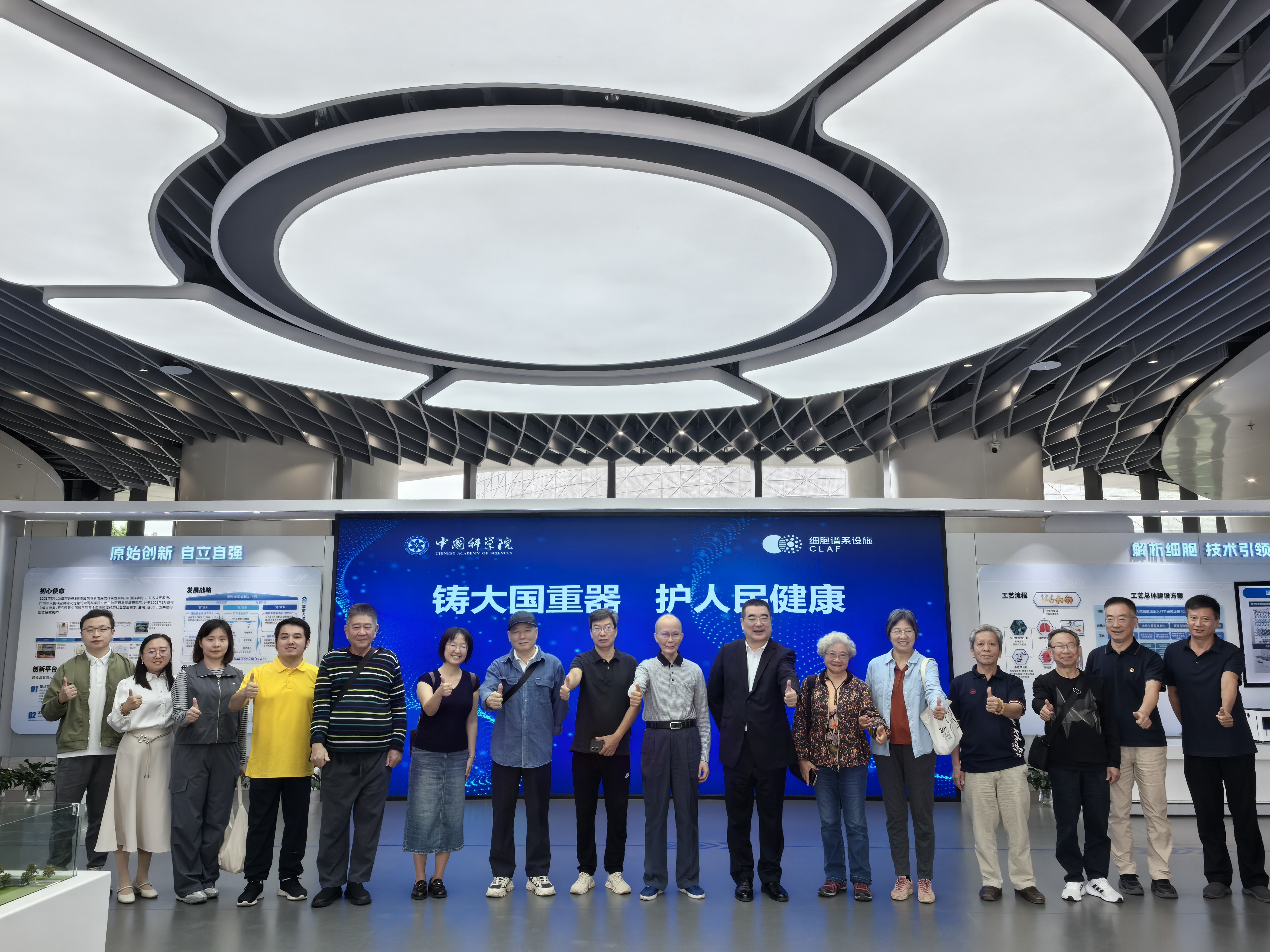 活動中,大家走進(jìn)人類細(xì)胞譜系大科學(xué)研究設(shè)施展廳,認(rèn)真聽取設(shè)施介紹,深入了解國家重大科技基礎(chǔ)設(shè)施項目的建設(shè)進(jìn)展與應(yīng)用前景。座談交流環(huán)節(jié)中,徐海代表廣州健康院向離退休老同志致以熱烈歡迎和誠摯的節(jié)日問候,和大家共同觀看廣州健康院宣傳片,回顧發(fā)展歷程,并圍繞廣州健康院的發(fā)展及設(shè)施建設(shè)中黨建對科研攻關(guān)的引領(lǐng)作用等展開熱烈討論。廣州分院原院長耿安松、離退休黨支部書記郭震、離退休黨支部委員李梅等老同志陸續(xù)發(fā)言,對廣州健康院為本次活動所作的細(xì)致安排表示感謝,同時為細(xì)胞譜系設(shè)施的建設(shè)和廣州健康院未來發(fā)展建言獻(xiàn)策并送上美好祝福。