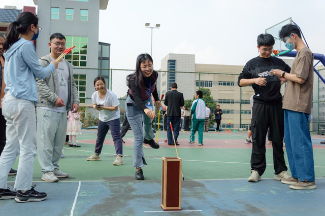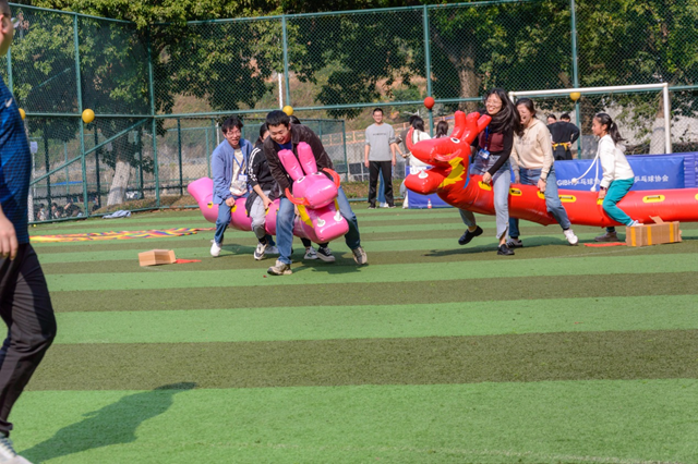 賽場(chǎng)上,參賽者就神龍吐珠、雙龍戲珠、青春風(fēng)火輪等12項(xiàng)比賽展開了激烈的角逐,爭(zhēng)相完成各項(xiàng)游戲任務(wù)。大家手腳并用,竭盡全力,場(chǎng)面歡樂而激動(dòng)人心。運(yùn)動(dòng)會(huì)為迎接龍年而設(shè)計(jì)的比賽“雙龍戲珠”吸引了眾多觀眾的目光。游戲設(shè)計(jì)新穎,隊(duì)員們緊握“龍身”,全力以赴地向目標(biāo)飛奔,充分展現(xiàn)團(tuán)結(jié)協(xié)作的力量。除競(jìng)技項(xiàng)目外,活動(dòng)還設(shè)置了許多娛樂項(xiàng)目。投壺游戲、珠行萬(wàn)里、合力建塔等讓大家盡情揮灑才藝和活力。