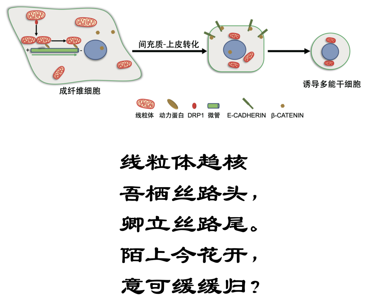 間充質(zhì)-上皮轉(zhuǎn)化(MET)和上皮-間充質(zhì)轉(zhuǎn)化(EMT)在胚胎發(fā)育、組織再生和癌癥轉(zhuǎn)移發(fā)揮作用,所以線粒體趨核調(diào)控MET具有廣泛的發(fā)育和病理意義。線粒體在細(xì)胞骨架上運(yùn)動(dòng),與細(xì)胞核的關(guān)系,是“吾棲絲路頭,卿立絲路尾”,在多能性的情況下,讓線粒體“陌上花開,可緩緩歸矣”,趨核到細(xì)胞核的身邊。本研究發(fā)現(xiàn)了線粒體趨核調(diào)控MET的新機(jī)制,豐富了線粒體重塑調(diào)控多能性獲得的新功能,有望為線粒體重塑調(diào)控細(xì)胞命運(yùn)的理論創(chuàng)新提供參考。