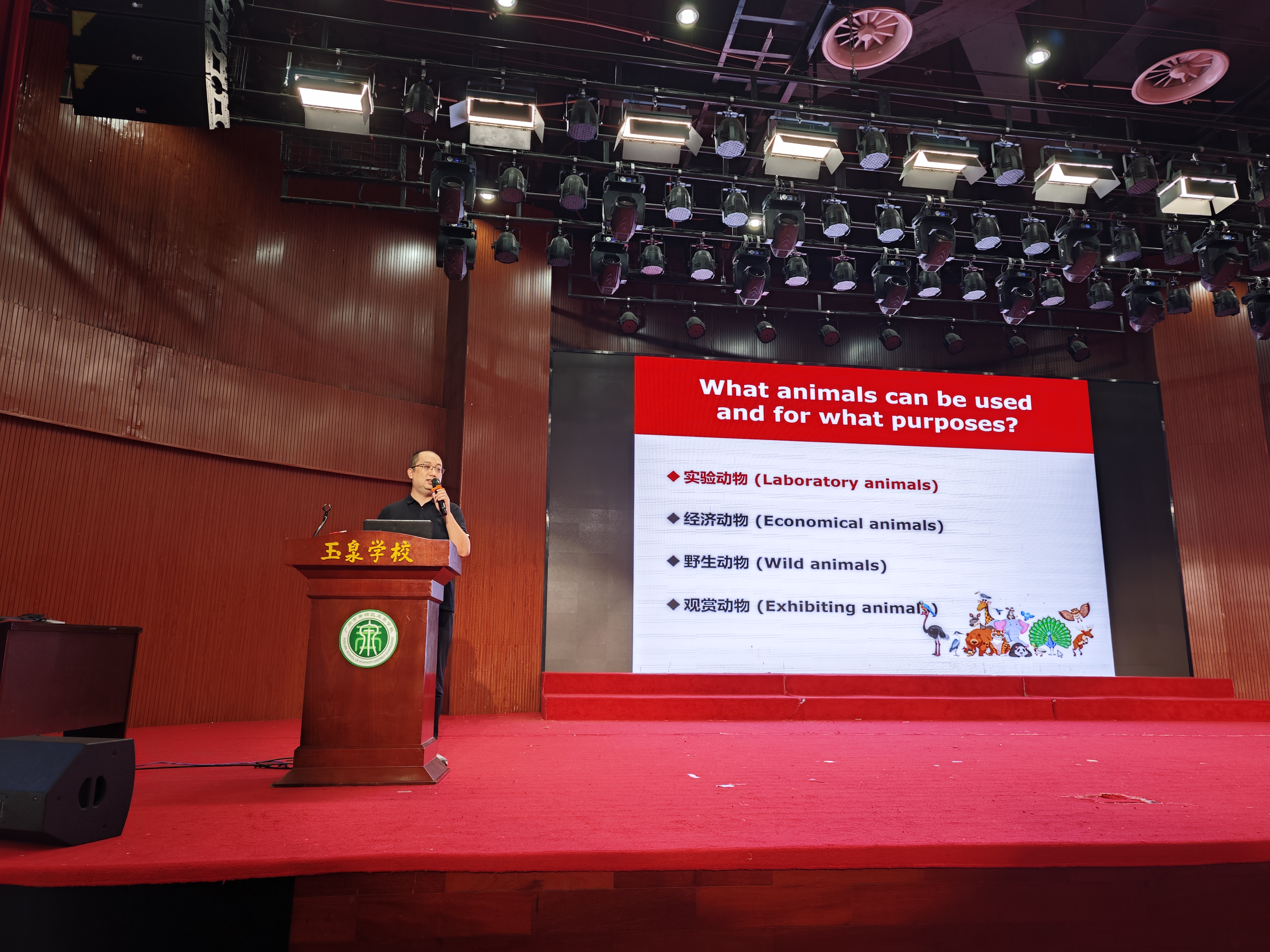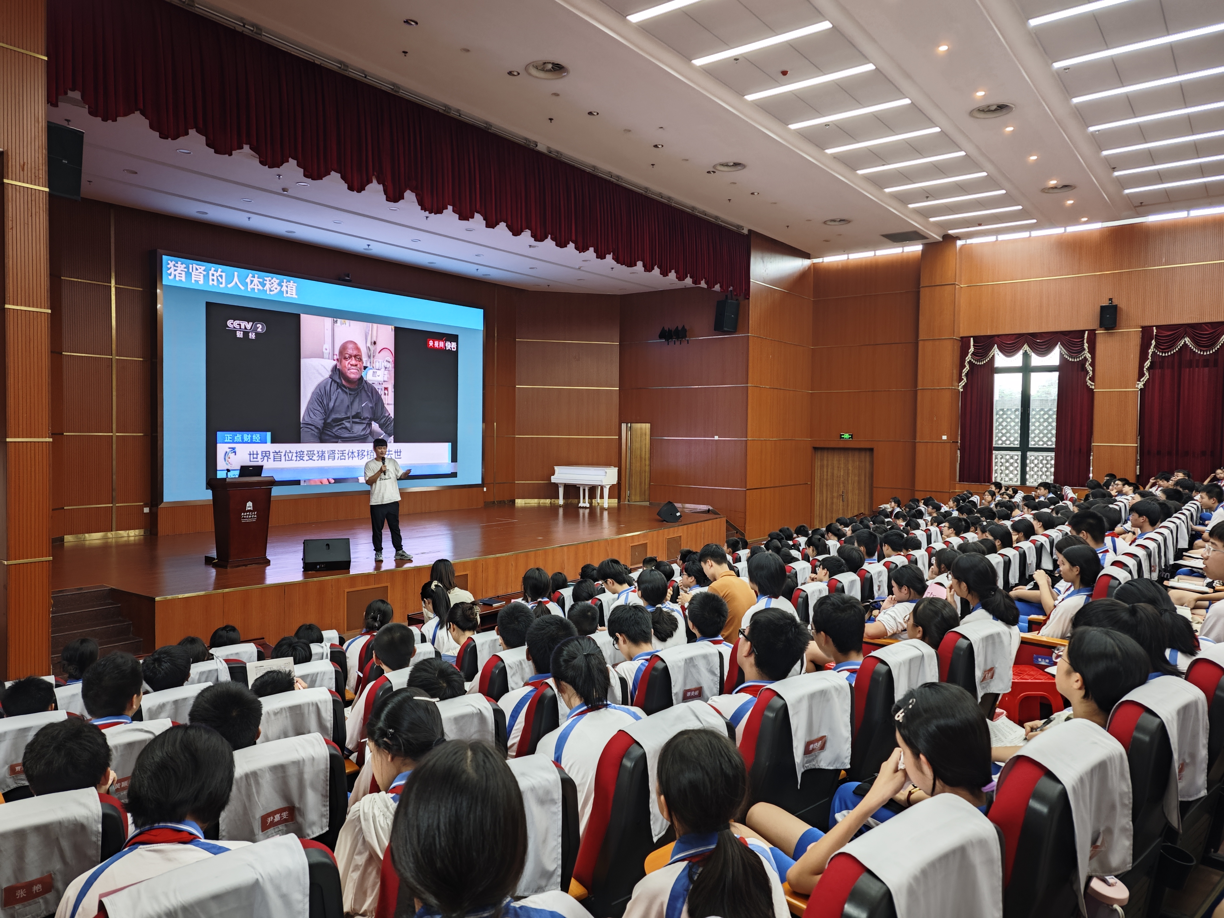 三名老師結(jié)合自身研究領(lǐng)域與學(xué)生認(rèn)知特點(diǎn),量身定制講座內(nèi)容,讓前沿科學(xué)知識(shí)“接地氣”。單永禮副研究員以《神奇的干細(xì)胞》為題,講述干細(xì)胞的特點(diǎn)及目前研究成果,為同學(xué)們揭開了生命起源與再生醫(yī)學(xué)的奧秘。閆海釗副研究員帶來(lái)《趣談實(shí)驗(yàn)動(dòng)物——實(shí)驗(yàn)動(dòng)物模型在人類疾病研究中的應(yīng)用》講座,生動(dòng)地介紹了兔子、豬等實(shí)驗(yàn)動(dòng)物如何助力醫(yī)學(xué)進(jìn)步,傳遞科學(xué)研究的嚴(yán)謹(jǐn)態(tài)度與人文關(guān)懷。李磊博士聚焦《獸面仁心的二師兄——異種移植與異種嵌合》主題,深入淺出地講解了異種器官移植的前沿進(jìn)展,引導(dǎo)同學(xué)們思考生命科學(xué)的倫理邊界與創(chuàng)新價(jià)值。三場(chǎng)講座均設(shè)置了互動(dòng)環(huán)節(jié),學(xué)生們踴躍提問,老師耐心解答,在輕松愉快的氛圍中激發(fā)了青少年的科研興趣與探索精神。