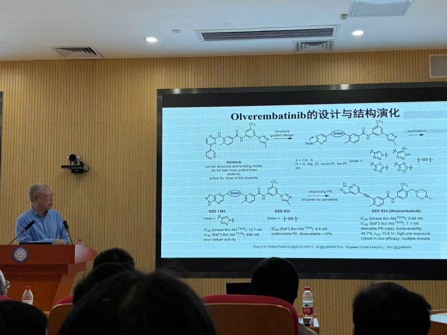 丁克研究員圍繞激酶研究進(jìn)行了一場(chǎng)精彩報(bào)告。首先,他全面分析了激酶研究目前面臨的主要挑戰(zhàn)和機(jī)遇,針對(duì)其在廣州健康院工作期間自主研發(fā)的藥物奧雷巴替尼(Olverembatinib,商品名:耐立克),從最初設(shè)計(jì)合成到后續(xù)的生物評(píng)價(jià)進(jìn)行了詳細(xì)介紹,該藥物目前已經(jīng)被國(guó)家藥品監(jiān)督管理局批注用于治療慢性髓性白血病(chronic myelogenous leukemia,CML)。此外,還介紹了Akt3的非激酶功能域可介導(dǎo)Osimertinib耐藥,使用Akt3選擇性降解劑能夠有效克服Osimertinib耐藥。
