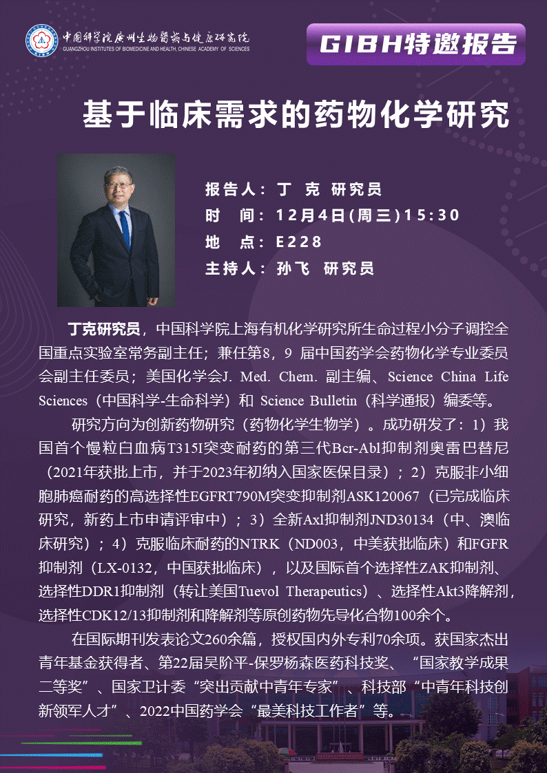 2024年12月4日特邀報告:基于臨床需求的藥物化學(xué)研究