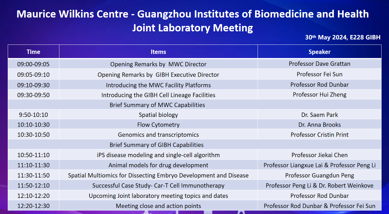 Maurice Wilkins Centre - Guangzhou Institutes of Biomedicine and Health Joint Laboratory Meeting