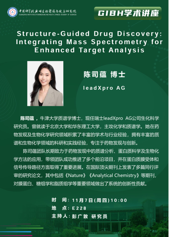2024年11月7日講座:Structure-Guided Drug Discovery: I ntegrating Mass Spectrometry for Enhanced Target Analysis