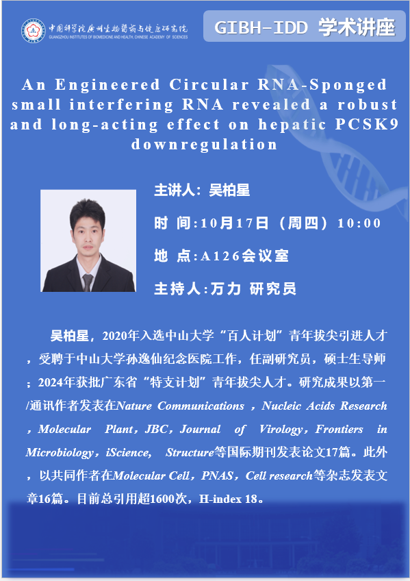 2024年10月17日學(xué)術(shù)講座:An Engineered Circular RNA-Sponged small interfering RNA revealed a robust and long-acting effect on hepatic PCSK9 downregulation