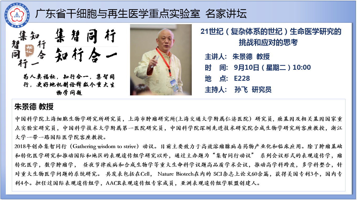 2024年9月10日廣東省干細(xì)胞與再生醫(yī)學(xué)重點(diǎn)實(shí)驗(yàn)室名家講壇:21世紀(jì)(復(fù)雜體系的世紀(jì))生命醫(yī)學(xué)研究的挑戰(zhàn)和應(yīng)對(duì)的思考