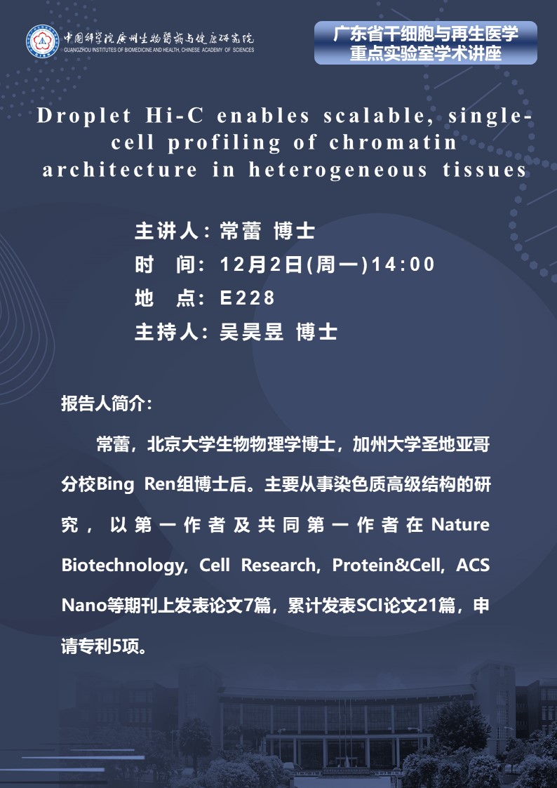 2024年12月2日廣東省干細(xì)胞與再生醫(yī)學(xué)重點實驗室學(xué)術(shù)講座:Droplet Hi-C enables scalable, single-cell profiling of chromatin architecture in heterogeneous tissues