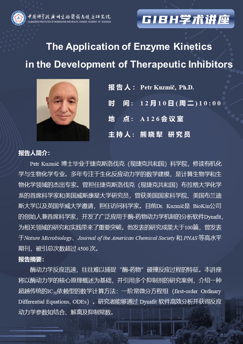 2024年12月10日學(xué)術(shù)講座:The Application of Enzyme Kinetics in the Development of Therapeutic Inhibitors