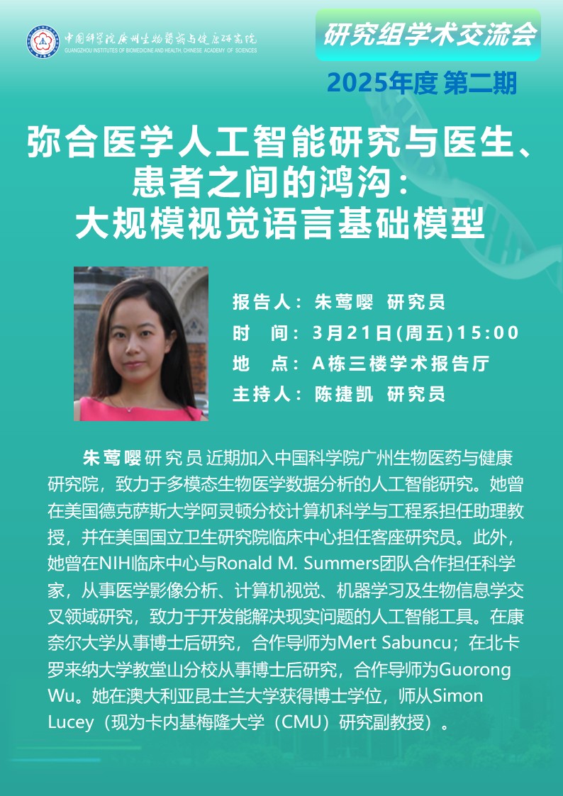2025年3月21日研究組學(xué)術(shù)交流會(huì)(2025年度第二期):彌合醫(yī)學(xué)人工智能研究與醫(yī)生、患者之間的鴻溝——大規(guī)模視覺語言基礎(chǔ)模型