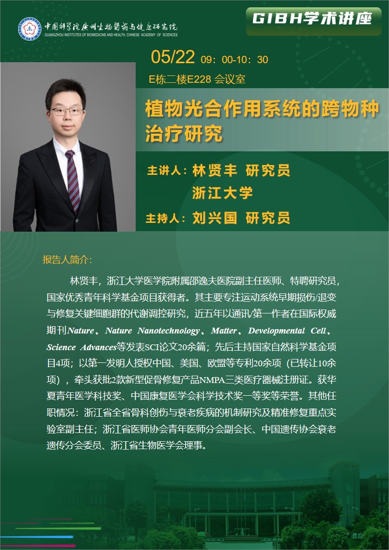 2025年5月22日學(xué)術(shù)講座:植物光合作用系統(tǒng)的跨物種治療研究