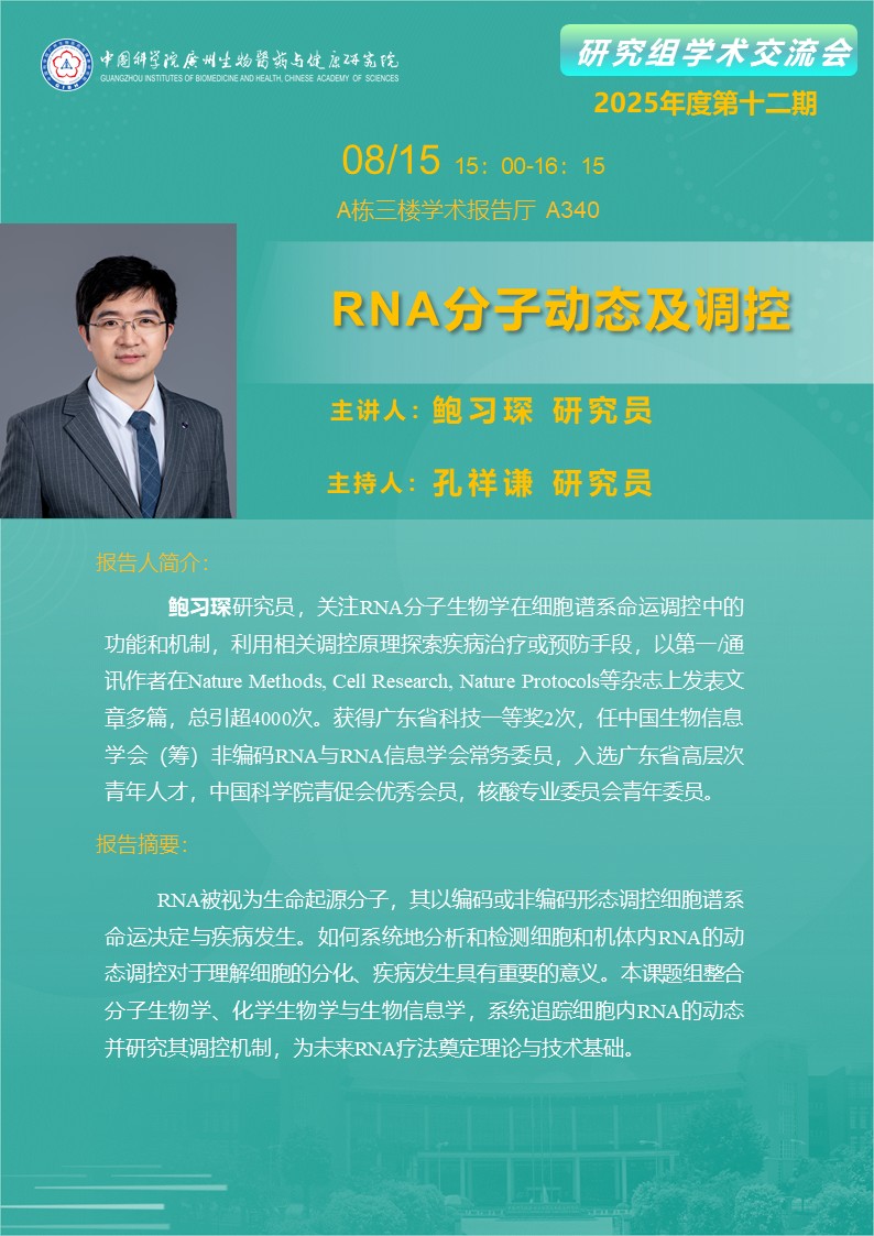 2025年8月15日研究組學術交流會(2025年度第十二期):RNA分子動態(tài)及調控