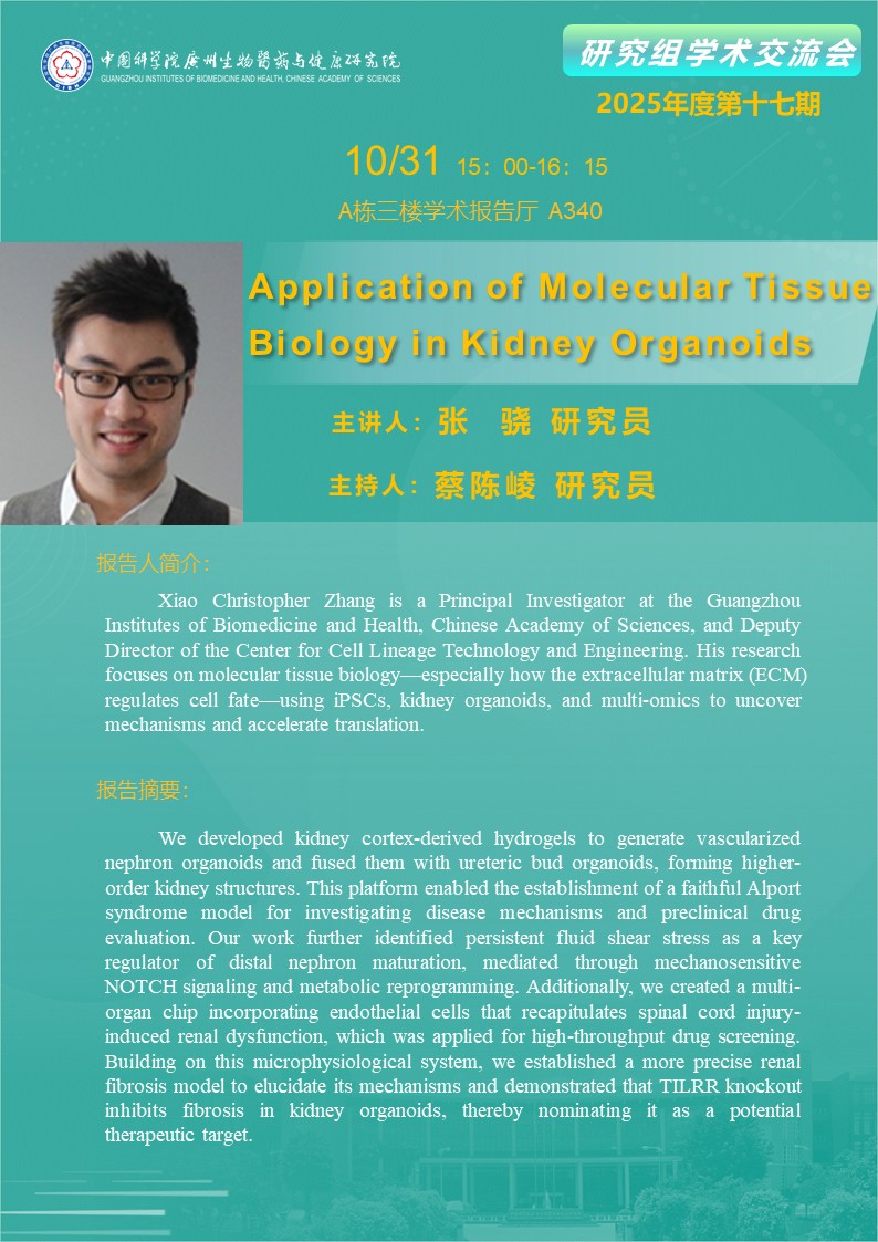 2025年10月31日研究組學(xué)術(shù)交流會(2025年度第十七期):Application of Molecular Tissue Biology in Kidney Organoids