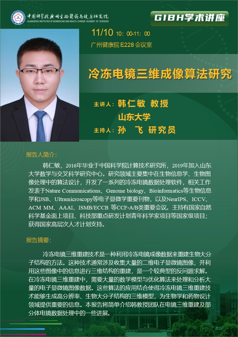2025年11月10日學術講座:冷凍電鏡三維成像算法研究