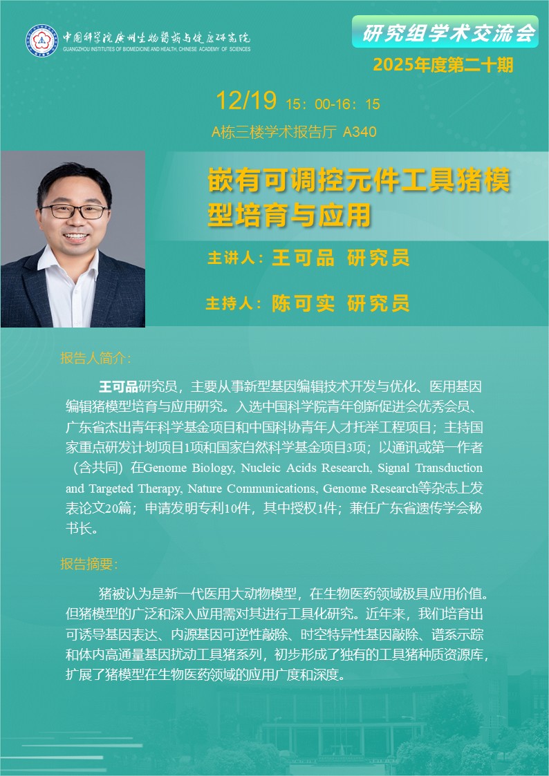 2025年12月19日研究組學(xué)術(shù)交流會(huì)(2025年度第二十期):嵌有可調(diào)控元件工具豬模型培育與應(yīng)用