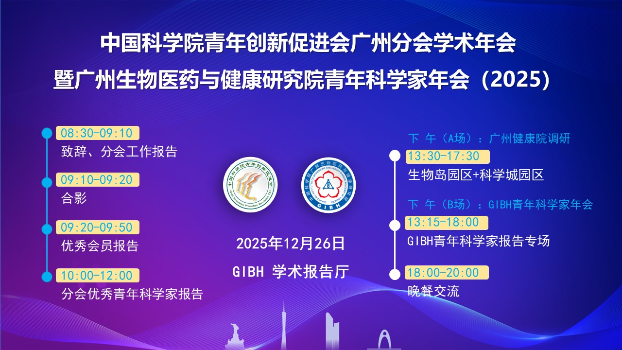 2025年12月26日:中國(guó)科學(xué)院青年創(chuàng)新促進(jìn)會(huì)廣州分會(huì)學(xué)術(shù)年會(huì)暨廣州生物醫(yī)藥與健康研究院青年科學(xué)家年會(huì)(2025)