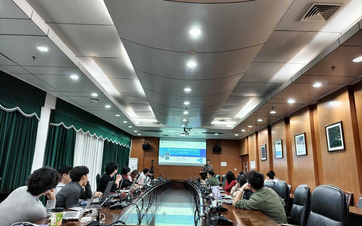 課程為期四周,聚焦R語言在生物信息學(xué)中的實(shí)際應(yīng)用,系統(tǒng)涵蓋基礎(chǔ)語法、數(shù)據(jù)結(jié)構(gòu)、科研作圖,以及轉(zhuǎn)錄組分析、單細(xì)胞測序及機(jī)器學(xué)習(xí)在多組學(xué)整合分析等內(nèi)容。劉景磊結(jié)合其行業(yè)與科研經(jīng)驗(yàn),以清晰易懂的方式講解知識(shí)要點(diǎn),并同步開展實(shí)操教學(xué)。課堂上互動(dòng)踴躍,同學(xué)們圍繞技術(shù)難點(diǎn)積極提問,劉景磊逐一細(xì)致解答、耐心指導(dǎo)操作細(xì)節(jié)。他同時(shí)表示非常樂于分享經(jīng)驗(yàn),助力學(xué)弟學(xué)妹成長。